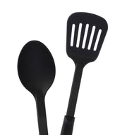 This do-it-all utensil set includes: nylon solid spoon, nylon ladle, nylon slotted turner, nylon fish spatula, and nylon skimmer.