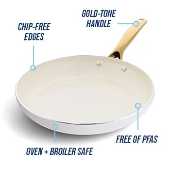 Experience high performance, healthy cookware that features the latest and greatest cooking technology! Our ceramic nonstick coating is infused with diamonds for remarkable strength and durability while delivering a shine that lasts a lifetime. As the leaders in nonstick, our ceramic coating is free of PFAS, PFOA, lead, and cadmium so you can craft daily meals without releasing any toxic fumes.