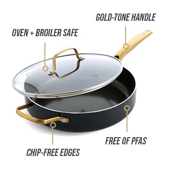 When it comes to quick-heating pans that deliver effortless release and professional results, go for the gold! This spacious sauté pan from the Blue Diamond Gold Collection is suitable for all stovetops, including induction, and the gold-tone handles add an eye-catching flair.