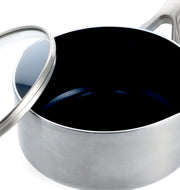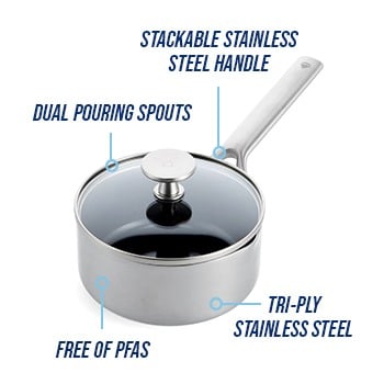 Crafted from multilayer stainless steel, this 1.5-Quart Saucepan is bound to be your next stovetop go-to! Complete with a stainless steel handle, durable glass lid, and two pouring spouts for convenient transferring – this pan takes small meals to the next level!